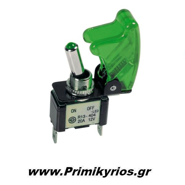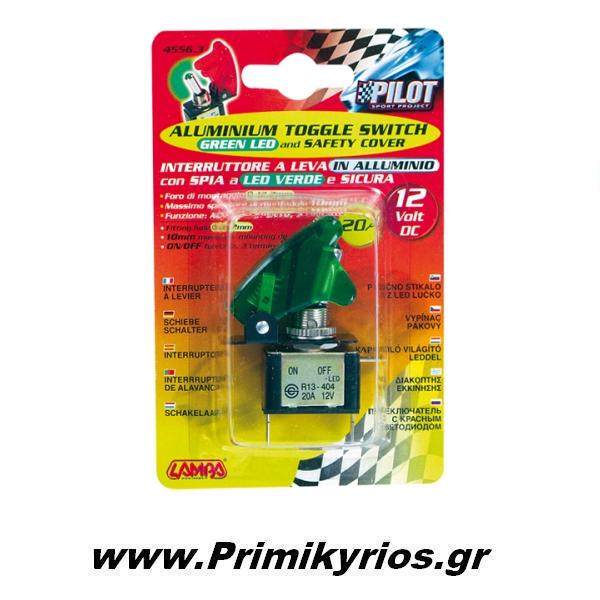 Αεροπορικού τύπου διακόπτης με Led πράσινο 12v 20A max και
