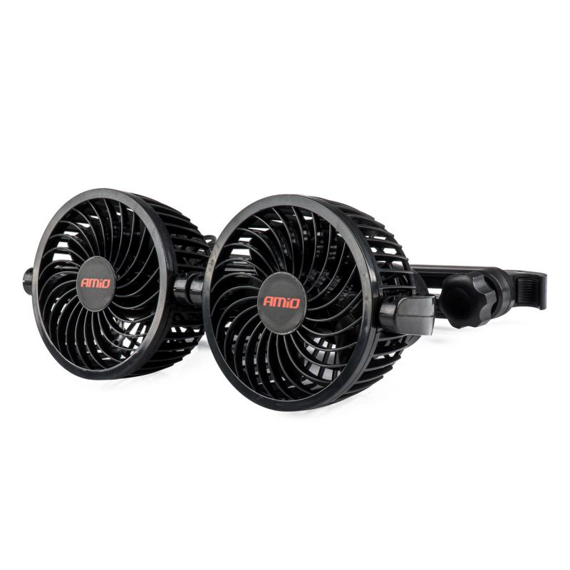 Ανεμιστήρας διπλός 12V με φις αναπτήρα /2 USB 5V και στήριξη στο προσκέφαλο, από την εταιρεία ΑMiO, πολωνικής προέλευσης.