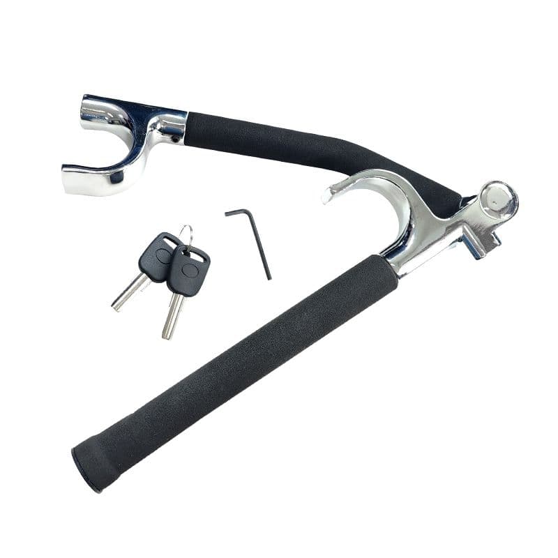 Υψηλής ασφαλείας κλειδαριά τιμονιού Εξαιρετικά μικρό μέγεθος Ειδική λαβή καουτσούκ Χρωμιωμένο φινίρισμα αλουμινίου Βάρος: 1,23kg