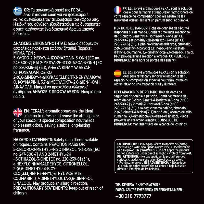 Συνδυάστε με το αντίστοιχα καθαριστικά της σειράς FeralDetailingPro Levander, για πλήρη αρωματική εμπειρία. Ιδανικό για χρήση μετά τον καθαρισμό εσωτερικών επιφανειών.