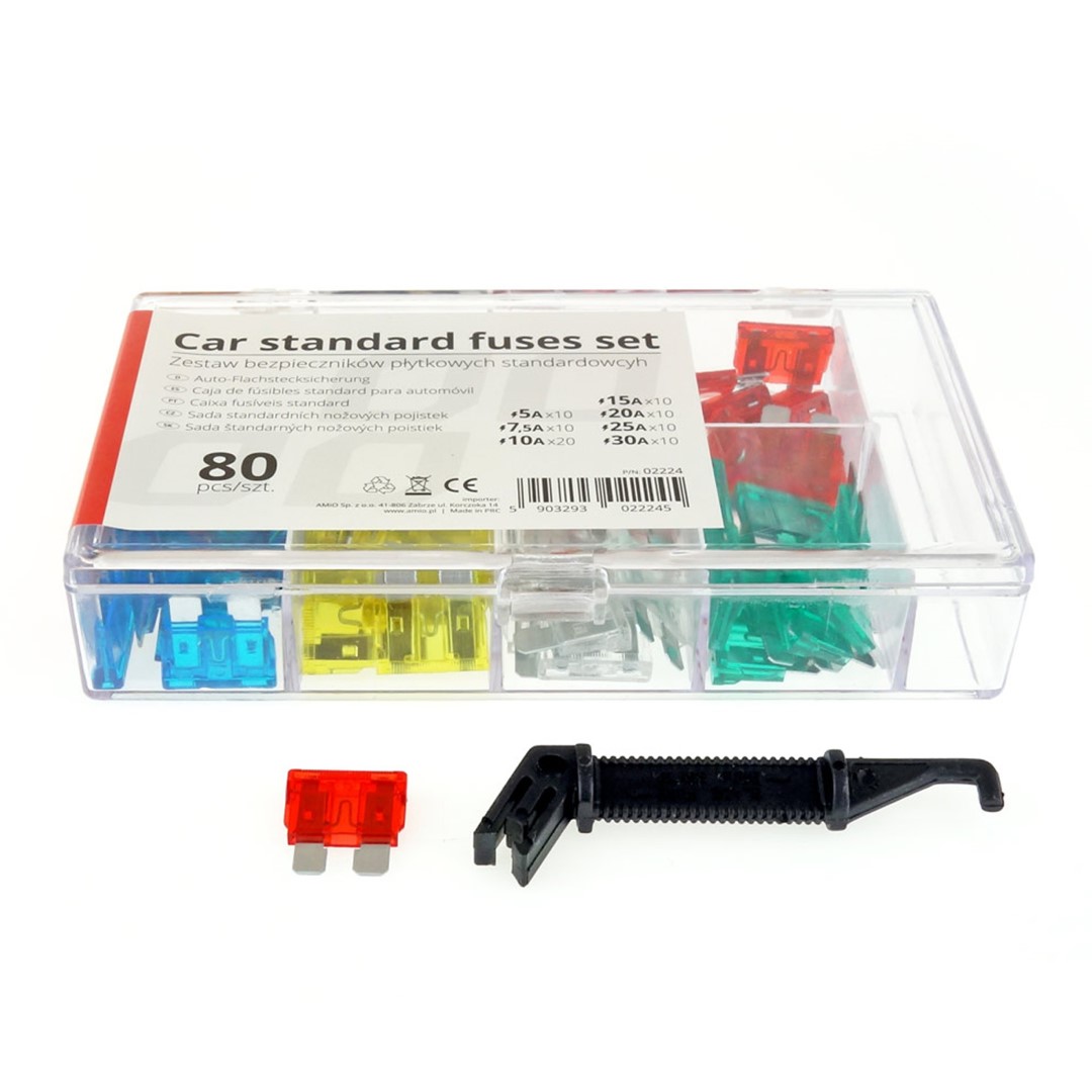 Ασφάλειες 80 τεμαχίων σε πλαστικό κουτί για να φυλάσσονται και να μεταφέρονται εύκολα. Η συσκευασία περιλαμβάνει τα εξής: