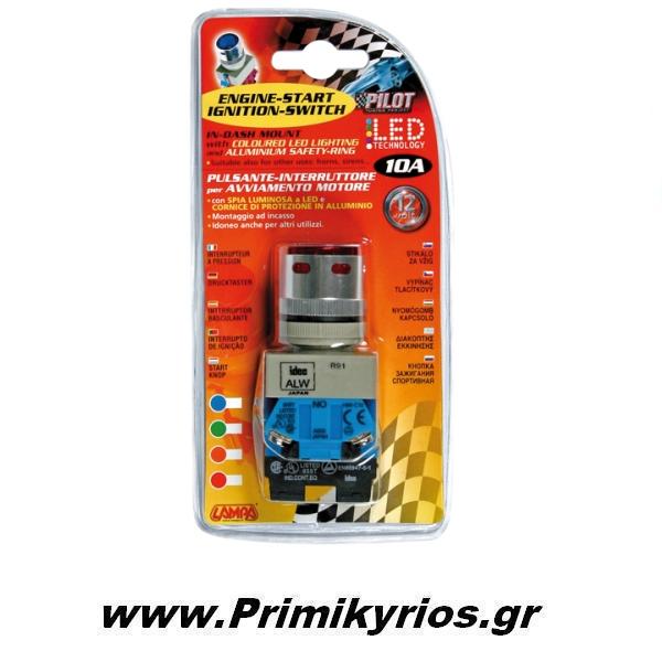 Μονό buton start με Led κόκκινο 12V 10A.