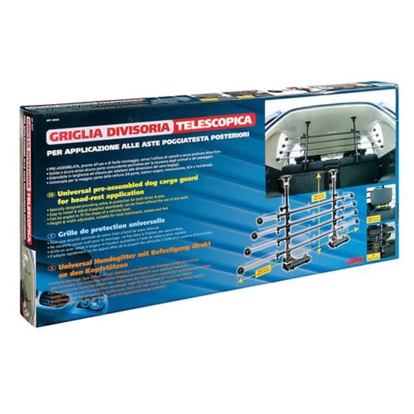 Προ-συναρμολογημένο διαχωριστικό σκυλιών με εφαρμογή στο προσκέφαλο• Ειδικά σχεδιασμένο παροχή ασφάλειας και προστασίας για τον οδηγό και τα κατοικίδια ζώα. • Εύκολη εγκατάσταση και προσαρμογή (παρέχεται συναρμολογημένο), μπορεί να τοποθετηθεί χωρίς τη χρήση εργαλείων. • Μπορεί να είναι υπό γωνία για να ταιριάζει στο σασί των οχημάτων. • Ύψος και το πλάτος ρυθμιζόμενο. Υψος: 40 ÷ 54 εκατοστά - Πλάτος: 84 ÷ 142 εκατοστά