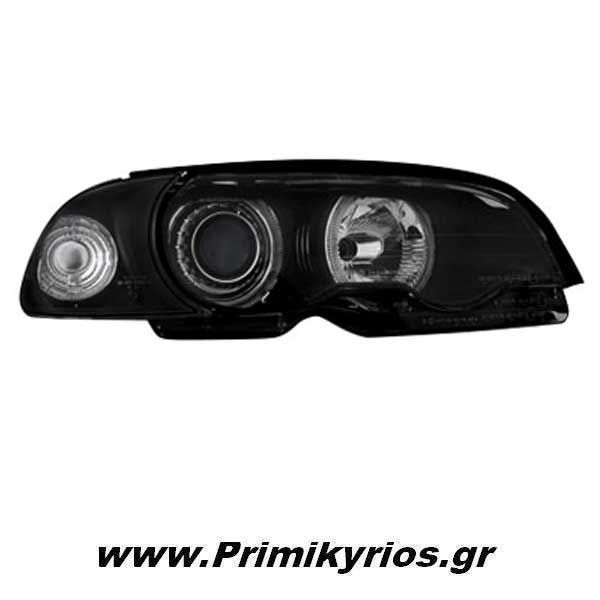Φανάρι εμπρός 2 Halo Rims για τοποθετηση σε αυτοκίνητο BMW E46 2D, μοντέλο έτους 1998 έως 2002. Διαθέσιμο σε μαύρο και chrome.