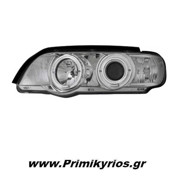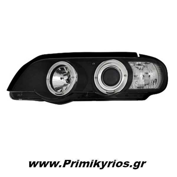 Φανάρι εμπρός 2 Halo Rims για τοποθέτηση σε αυτοκίνητο BMW X5, μοντέλο έτους 1999 έως 2002. Διαθέσιμο σε χρώμα μαύρο και chrome.
