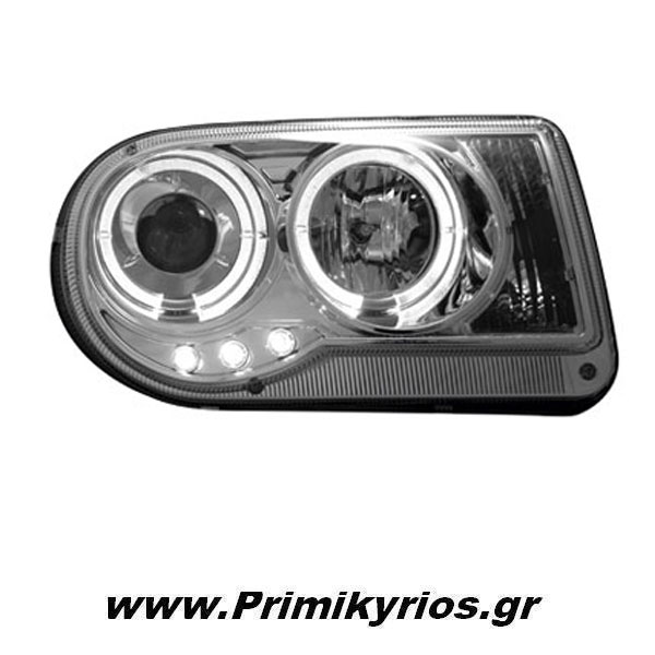 Φανάρι εμπρός 2 Halo Rims για τοποθετηση σε αυτοκίνητο Chrysler 300C, μοντέλο έτους 2004 έως 2008. Το φανάρι διατίθεται σε chrome και μαύρο χρώμα.