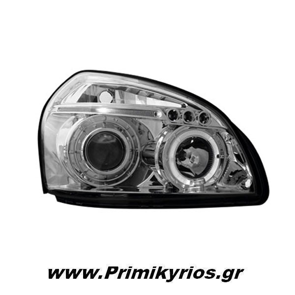 Φανάρι εμπρός 1 Halo Rim για τοποθέτηση σε αυτοκίνητο Hyundai Tucson, μοντέλο έτους 2004 +. Τα φανάρια είναι διαθέσιμα σε χρώμα μαύρο και chrome.