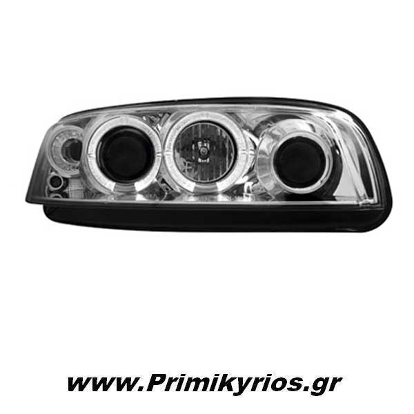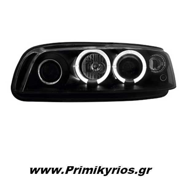 Φανάρι εμπρός μαύρο 2 Halo Rims για αυτοκίνητο Fiat Punto, για μοντέλο έτους 1999 έως 2003.