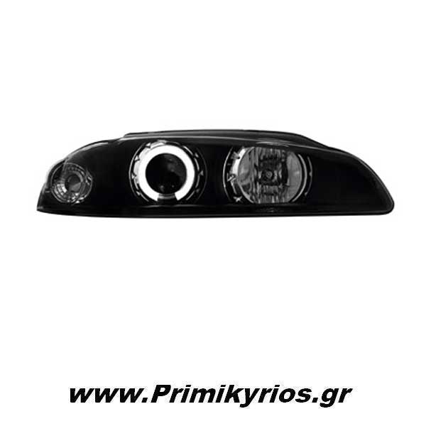 Φανάρι εμπρός 1 Halo Rim για τοποθέτηση σε αυτοκίνητο Mitsubishi Eclipse, μοντέλο έτους από 1997 έως 1999. Τα φανάρια διατίθενται σε χρώμα μαύρο και chrome.