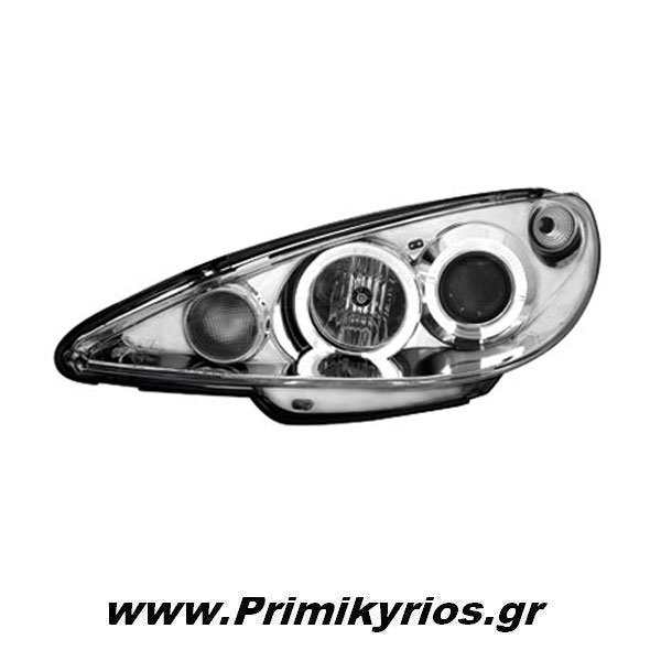 Φανάρι εμπρός για τοποθέτηση σε αυτοκίνητο Peugeot 206, μοντέλο έτους 1998 έως 2007. Τα φανάρια διατίθενται σε δύο χρώματα : μαύρο και chrome.