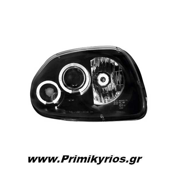 Φανάρι εμπρός 2 Halo Rims για τοποθέτηση σε αυτοκίνητο Renault Clio II, μοντέλο έτους 1998 έως 2001. Τα φανάρια διατίθενται σε δύο χρώματα : chrome και μαύρο