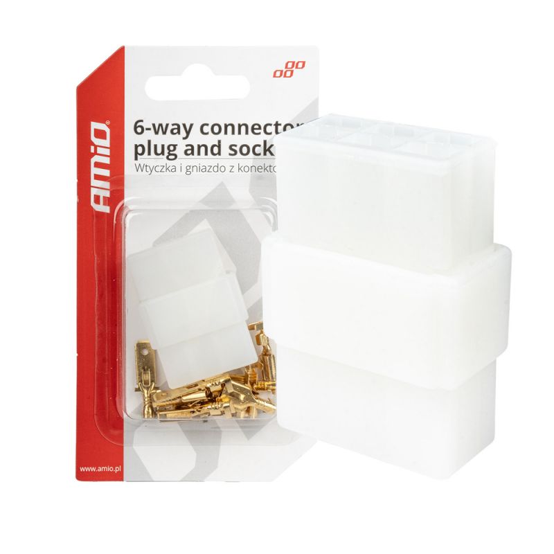 Φίσα σύνδεσης καλωδίων 6 υποδοχών με πλαστικό κούμπωμα, από την εταιρεία ΑΜΙΟ, πολωνικής προέλευσης.