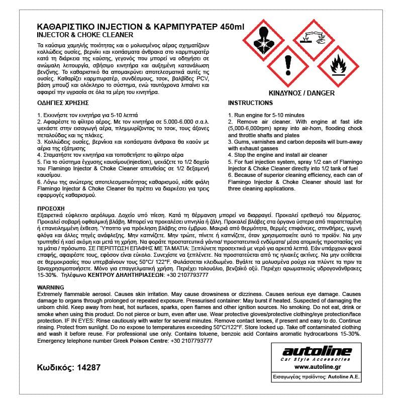 Καθαριστικό συστήματος ψεκασμού και καρμπυρατέρ. Τα καύσιμα χαμηλής ποιότητας και ο μολυσμένος αέρας σχηματίζουν κολλώδεις ουσίες, βερνίκι και κοιτάσματα άνθρακα στο καρμπυρατέρ κατά τη διάρκεια της καύσης, γεγονός που μπορεί να οδηγήσει σε ανώμαλη λειτουργία, σβήσιμο κινητήρα και αυξημένη κατανάλωση βενζίνης. Η ανώτερης ποιότητας φόρμουλα αυτού του προϊόντος θα απομακρύνει αποτελεσματικά αυτές τις ουσίες. Καθαρίζει καρμπυρατέρ, συνδέσμους, τσοκ, βαλβίδες PCV, βάση μπουζί και ολόκληρο το σύστημα, ενώ ταυτόχρονα λιπαίνει και αφαιρεί την υγρασία σε όλα τα μέρη του κινητήρα. Χρησιμοποιήστε το καθαριστικό για να αποκαταστήσετε την αποτελεσματικότητα, να αυξήστε την ισχύ του κινητήρα και να επαναφέρετε την ομαλή του λειτουργία. Κιβώτιο: 24 τεμ.