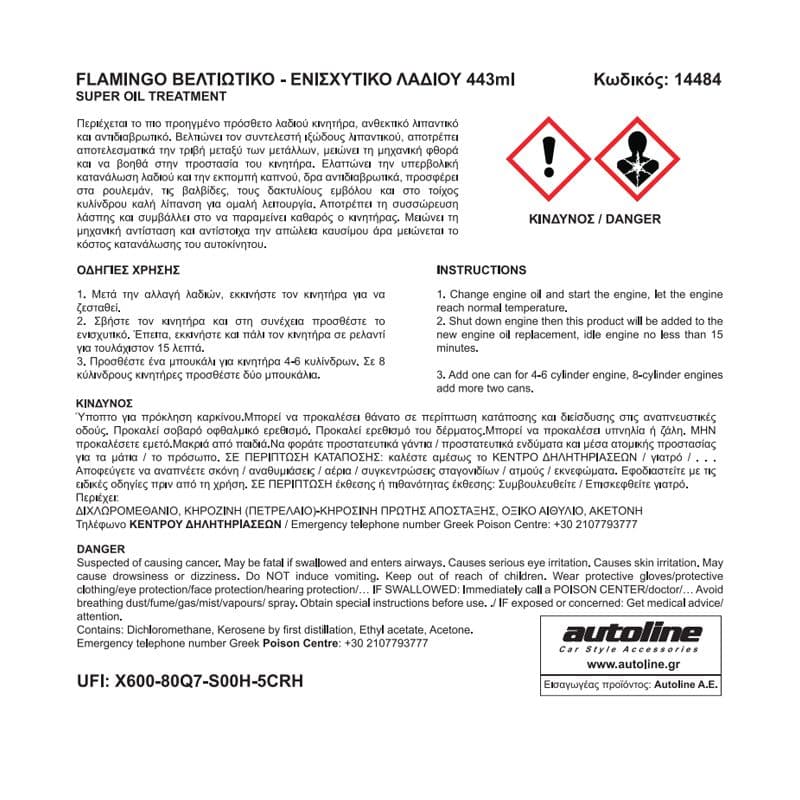 Περιέχεται το πιο προηγμένο πρόσθετο λαδιού κινητήρα, ανθεκτικό λιπαντικό και αντιδιαβρωτικό. Βελτιώνει τον συντελεστή ιξώδους λιπαντικού, αποτρέπει αποτελεσματικά την τριβή μεταξύ των μετάλλων, μειώνει τη μηχανική φθορά και να βοηθά στην προστασία του κινητήρα. Ελαττώνει την υπερβολική κατανάλωση λαδιού και την εκπομπή καπνού, δρα αντιδιαβρωτικά, προσφέρει στα ρουλεμάν, τις βαλβίδες, τους δακτυλίους εμβόλου και στο τοίχος κυλίνδρου καλή λίπανση για ομαλή λειτουργία. Αποτρέπει τη συσσώρευση λάσπης και συμβάλλει στο να παραμείνει καθαρός ο κινητήρας. Μειώνει τη μηχανική αντίσταση και αντίστοιχα την απώλεια καυσίμου άρα μειώνεται το κόστος κατανάλωσης του αυτοκίνητου. Κιβώτιο: 24 τεμ.