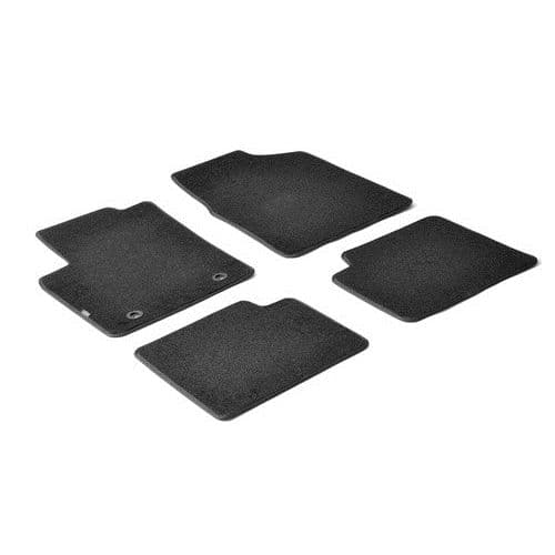 Πατάκια αυτοκινήτου από την εταιρία LAMPA, ιταλικής προέλευσης, κατασκευασμένα από υψηλής ποιότητας μοκέτα - 100% πολυπροπυλένιο - σε μαύρο χρώμα με περιμετρικό φινίρισμα από βελούρ ρέλι (απομίμηση βελούδου), σχεδιασμένα για να ταιριάζουν ακριβώς στις διαστάσεις του δαπέδου του εκάστοτε οχήματος - μαρκέ προϊόν. Είναι αδιάβροχα και διαθέτουν αντιολισθητικό πάτο ενισχυμένο με gel στο πίσω μέρος τους για καλύτερη πρόσφυση στο δάπεδο, καθώς και κουμπιά στερέωσης fix-points για όσα οχήματα είναι εξοπλισμένα με αντίστοιχες εργοστασιακές υποδοχές για να παραμένουν σταθερά στο πάτωμα της καμπίνας κατά την είσοδο/έξοδο των επιβατών.