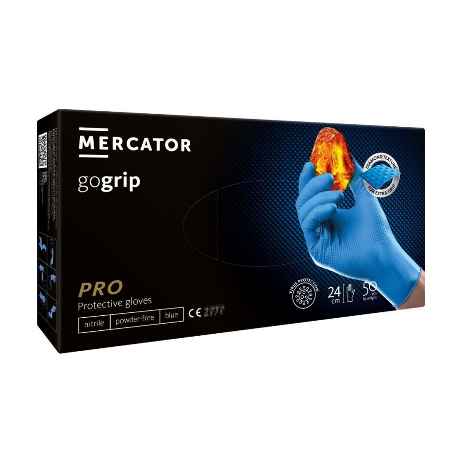 ΓΑΝΤΙΑ ΝΙΤΡΙΛΙΟΥ MERCATOR GOGRIP ΣΕ ΜΠΛΕ ΧΡΩΜΑ XLARGE (XL) ΑΜΙΟ - 50 ΤΕΜ. Γάντια νιτριλίου MERCATOR GOGRIP σε μπλε χρώμα, από την εταιρεία ΑΜΙΟ, πολωνικής προέλευσης. Τα γάντια MERCATOR® gogrip blue είναι γάντια νιτριλίου υψηλής ποιότητας που χαρακτηρίζονται από μοναδική ποιότητα, ιδανικά για εργασία σε δύσκολες συνθήκες. Η μοναδική τους απόχρωση είναι τέλεια ορατή, γεγονός που κάνει την εργασία πολύ πιο εύκολη. Παρέχουν ασφαλές κράτημα, υψηλή ακρίβεια και αποτελούν φραγμό για βακτήρια, μύκητες και ιούς. Τα γάντια συμμορφώνονται με τις διατάξεις του Κανονισμού ΡΡΕ (ΕΕ) 2016/425 ως προϊόν κατηγορίας ΙΙΙ, στην περίπτωση αυτή τύπου Β, και τα πρότυπα EN ISO 374-1:2016+A1:2018, EN ISO 374-2:2019 , EN ISO 374- 4:2019, EN ISO 374-5:2016, EN 16523-1:2015+A1:2018 και EN ISO 21420:2020. -MERCATOR® gogrip μπλε γάντια νιτριλίου -Μέγεθος: XL. -Μπλε χρώμα. -Υλικό: νιτρίλιο. -Τύπος προστασίας: III. -Υψηλή προστασία από χημικά. -3 φορές παχύτερο από τα τυπικά γάντια. -Υφή τρισδιάστατου διαμαντιού. -Ανθεκτικό σε λίπη και λάδια. -Χωρίς πούδρα. -Εύκολο να φορεθεί. -Υψηλή ευελιξία και αντοχή. -Ανατομικό σχήμα. -Κατάλληλο για ευαίσθητο δέρμα. -Μη λατέξ. Πληρούν τα πρότυπα: EN ISO 374-1 EN ISO 374-5 EN 16523-1 EN ISO 21420 EN ISO 374-2 Κανονισμός (ΕΕ) 2016/425 Συσκευασία 50 τεμαχίων