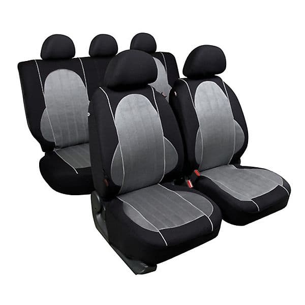 Καλύμματα καθισμάτων Alyssa (Γκρι). Αποτελείται από 2 μπροστινά και 2 πισινά καλύμματα με 5 προσκέφαλα. Από πολυεστέρα και γέμισμα με αφρολέξ. Κάνει και για καθίσματα με αερόσακο. Δεν ξεθωριάζουν από τον ήλιο.