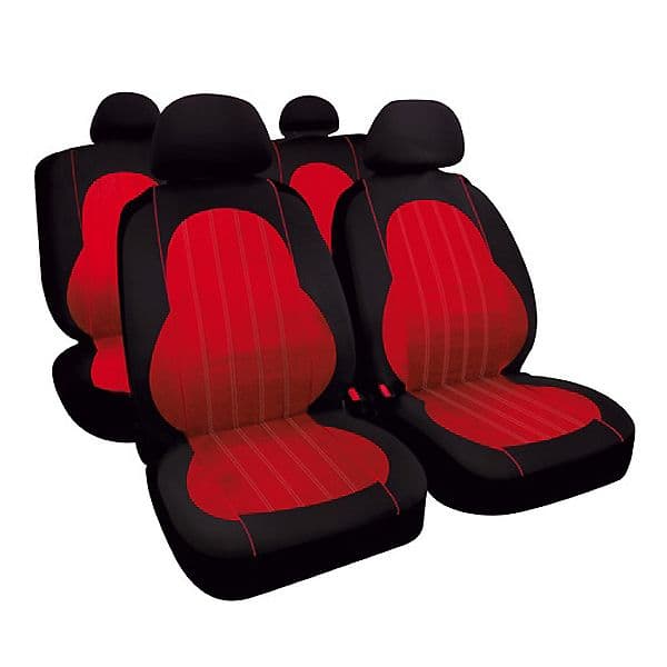 Καλύμματα καθισμάτων Alyssa (Κόκκινο). Αποτελείται από 2 μπροστινά και 2 πισινά καλύμματα με 5 προσκέφαλα. Από πολυεστέρα και γέμισμα με αφρολέξ. Κάνει και για καθίσματα με αερόσακο. Δεν ξεθωριάζουν από τον ήλιο.