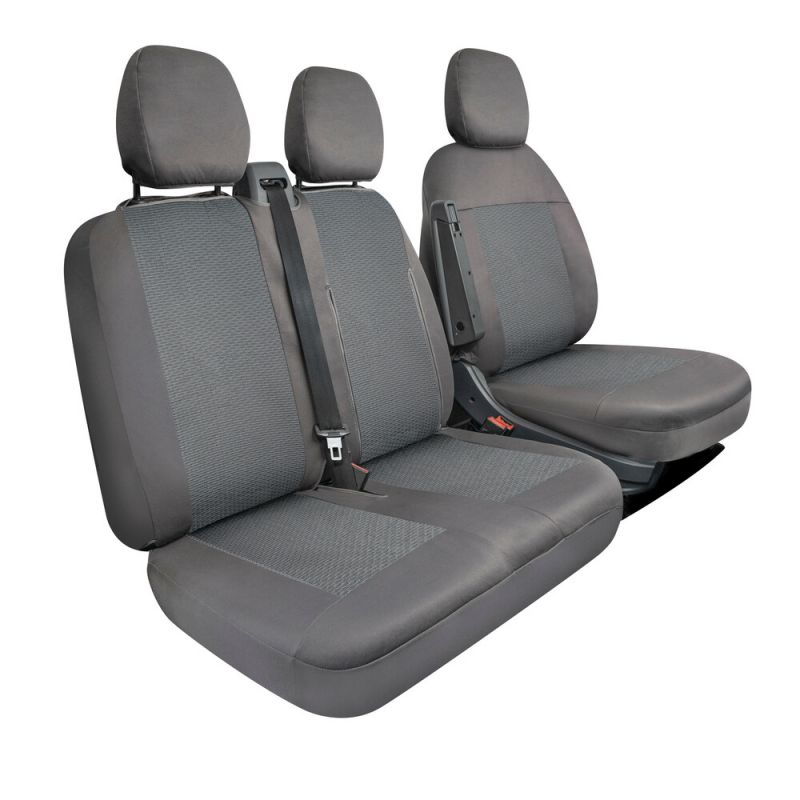ΚΑΛΥΜΜΑΤΑ ΚΑΘΙΣΜΑΤΩΝ ΚΑΙ ΠΡΟΣΚΕΦΑΛΑ ΓΙΑ 3 ΣΕΙΡΕΣ ΘΕΣΕΩΝ ΣΕ ΓΚΡΙ ΣΚΟΥΡΟ ΧΡΩΜΑ SEDILI SET LARGE / MEDIUM LAMPA - 1 ΤΕΜ. Κάλυμμα καθίσματος οδηγού: Velcro και στις δύο πλευρές. Φαρδύ άνω άνοιγμα για να επιτρέπει τη διέλευση μη αποσπώμενων ή ενσωματωμένων προσκέφαλων. Συμβατό με αερόσακους. Ελαστικό, επενδεδυμένο ύφασμα για μέγιστη άνεση και χρηστικότητα. Κάλυμμα συνοδηγών: Κεντρικό φερμουάρ. Άνοιγμα στο κάθισμα για να αγκιστρώνει στην κεντρική ζώνη ασφαλείας. Μεγάλο κλείσιμο με Velcro για να επιτρέπει τη διέλευση μη αποσπώμενων ή ενσωματωμένων προσκέφαλων. Ελαστικό, επενδεδυμένο ύφασμα για μέγιστη χρηστικότητα. Πλήρες σετ 3 καλυμμάτων προσκέφαλων. Σύνθεση: 100% πολυεστέρας. Άνω ύφασμα ζακάρ με επένδυση 3 mm. Υπόστρωμα: ελαστικός πολυεστέρας. Συμβατό με: Citroen Jumper Daewoo Lublin I, II, III Fiat Ducato Hyundai H-1 Iveco Daily Kia K-2500, K-2700, K-2900 Kia Pregio Mercedes Sprinter Nissan Cabstar Peugeot Boxer Renault Mascot Toyota Hiace Volkswagen Crafter Volkswagen LT Συσκευασία 1 σετ