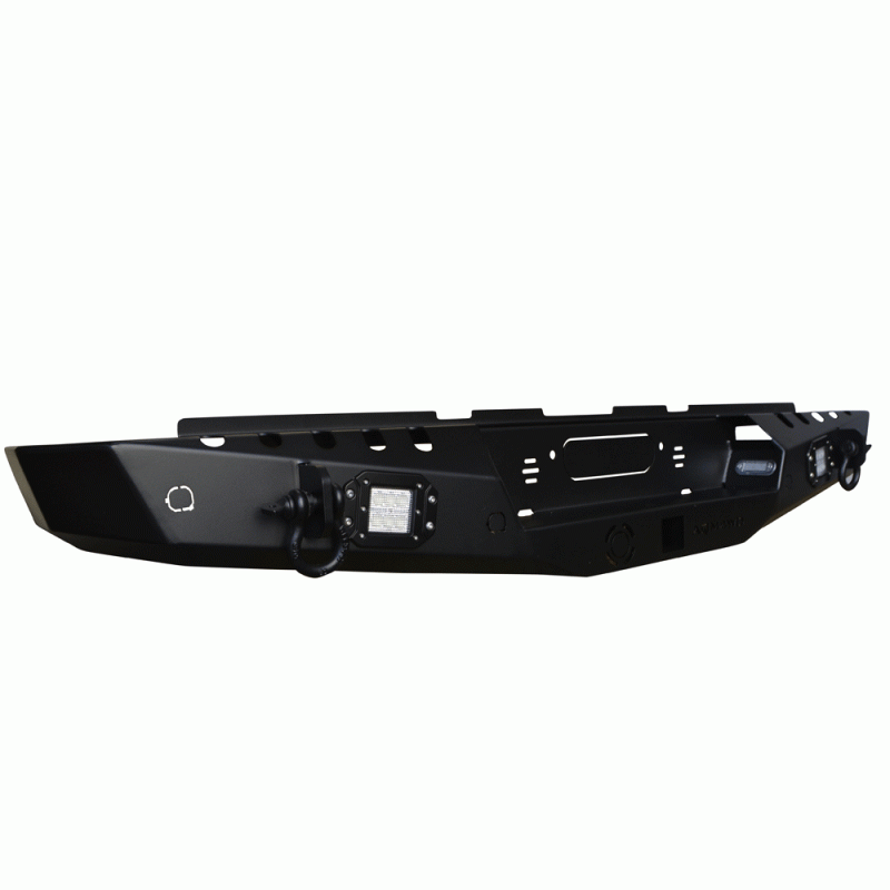 Με 2 διαμαντένια αδιάβροχα LED για όπισθεν. Επιπλέον ο νέος προφυλακτήρας της Groupak, μπορεί να γίνει χρήσιμος και λειτουργικός ακόμα και τη νύχτα, στην περίπτωση καταναγκαστικής οπισθοπορείας του οχήματος σας όπου υπάρχει ελλιπής φωτισμός στις offroad εξορμήσεις ή εργασίες σας. Με 2 μαύρους γάντζους για τυχόν δυνατότητα έλξης Δύο (2) αδιάβροχα LED φωτισμού πινακίδας Από ατσάλι βαρέος τύπου, βαμμένο σε μάτ μαύρο.  Το ατσάλι (χάλυβας), μετά από την κατεργασία και αφού έχει πάρει την μορφή του, περνάει από πέντε (5) στάδια επεξεργασίας μέχρι το τελικό στάδιο της ένωσής του με τη βαφή. Ως τελευταίο βήμα εφαρμόζεται η πούδρα. Μέσω αυτής της διαδικασίας το προϊόν είναι ιδιαίτερα ενισχυμένο κατά της σκουριάς. Ειδική αναμονή (θέση) για πρίζα (καλωδίωση) Τέσσερεις (4) θέσεις για τους εργοστασιακούς αισθητήρες παρκαρίσματος Με πιστοποιητικό ποιότητας TS EN ISO 9001:2015, No 2010021301615 ΟΕΜ fitting στις εργοστασιακές υποδοχές του κατασκευαστή Προστασία του οπίσθιου μέρους του αυτοκινήτου