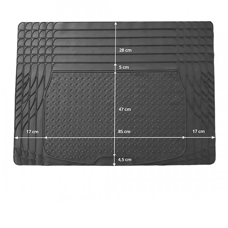 Πατάκι πορτμπαγκάζ αυτοκινήτου από λάστιχο. Τα πατάκια από λάστιχο έχουν μεγάλη αντοχή στην καθημερινή χρήση, είναι αδιάβροχα και καθαρίζονται εύκολα. Ο σχεδιασμός του επιτρέπει να το κόψετε για να εφαρμόζει καλυτέρα στο πορτμπαγκάζ σας. Εύκολη συντήρηση Προστατεύει και ομορφαίνει το εσωτερικό του αυτοκινήτου σας Αντιολισθητική κατασκευή Διαστάσεις: 118x80cm Βάρος: 1.9kg Υλικό: PVC Χρώμα: Μαύρο