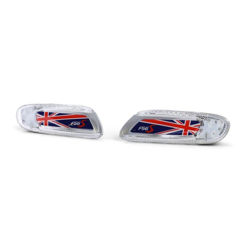 Πλαϊνά Φλας Φτερού Για Mini Cooper F56 13+ Union Jack Flag Blue Led White 2 Τεμάχια