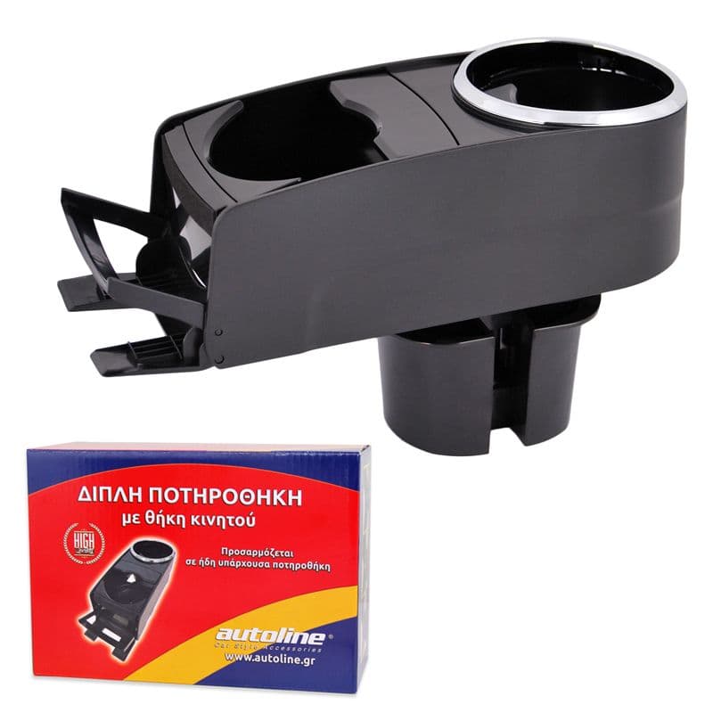 Διπλή Ποτηροθήκη Και Θήκη Κινητού Αυτοκινήτου Μαύρο Τοποθετείται πολύ εύκολα στις υπάρχουσες ποτηροθήκες του αυτοκινήτου σε όποιο σημείο σας βολεύει . Τοποθετείται είτε μπροστά είτε πίσω (όπου υπάρχει ποτηροθήκη) Περιέχει 2 ποτηροθήκες και 1 θήκη κινητού Έχει βάση που προσαρμόζεται σε όλα τα μεγέθη ποτηροθήκης . Διαστάσεις; Μ x Π x Υ : 18cm x 8cm x 6,5cm (12,5cm με τη βάση) Λεπτομέρειες Προϊόντος Θέση: Ποτηροθήκη Πλήθος Τεμαχίων: 1 Τεμάχιο Υλικό: Πλαστικό Χρώμα: Μαύρο