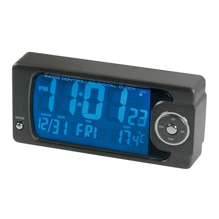 Ραδιοελεγχόμενο ψηφιακό ρολόι πολλαπλών λειτουργιών (RCC), που μπορεί να χρησιμοποιηθεί επιπλέον ως ημερολόγιο και θερμόμετρο. Διαθέτει επιλογή 2 χρωμάτων (backlight) μεταξύ κόκκινου και μπλε, λειτουργία αναβολής ξυπνητηριού, μεγάλα ψηφία, αντάπτορα αναπτήρα 12/24 V, μπαταρίες λειτουργίας, ρυθμιζόμενη βάση και ταινία στήριξης/τοποθέτησης.