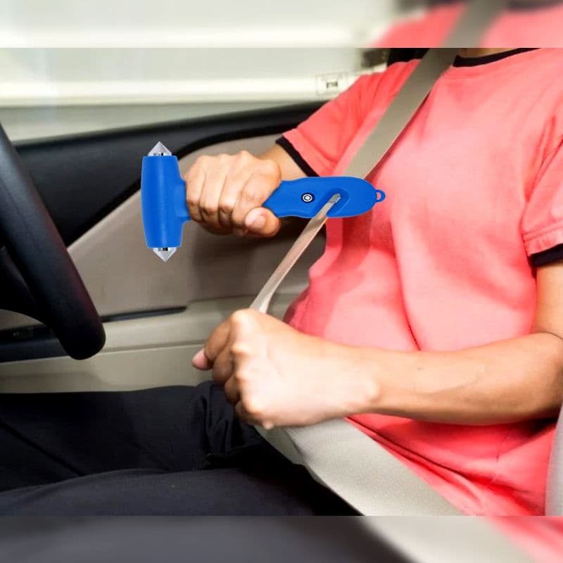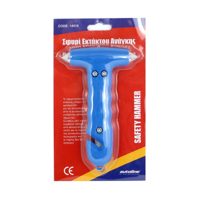 Διαθέτει σφυρί παραθύρου και κόπτη ζώνης ασφαλείας • Το σφυρί παραθύρων σας επιτρέπει να σπάσετε τα παράθυρα του αυτοκινήτου εύκολα όταν βρίσκεστε σε κατάσταση έκτακτης ανάγκης • Ο κόπτης ασφαλείας σας επιτρέπει να κόβετε γρήγορα και με ασφάλεια τη ζώνη ασφαλείας σε περίπτωση ατυχήματος. • Το σφυρί έκτακτης ανάγκης μπορεί να χρησιμεύσει για τον απεγκλωβισμό από το αυτοκίνητο σπάζοντας κάποιο από τα τζάμια του. Χτυπάμε πάντα στις άκρες του τζαμιού και ποτέ στο κέντρο. Μέγεθος: 15x9.3x2.5cm Βάρος: 140g Υλικόl: ABS+40CR Χρώμα: μπλε Με πιστοποίηση CE