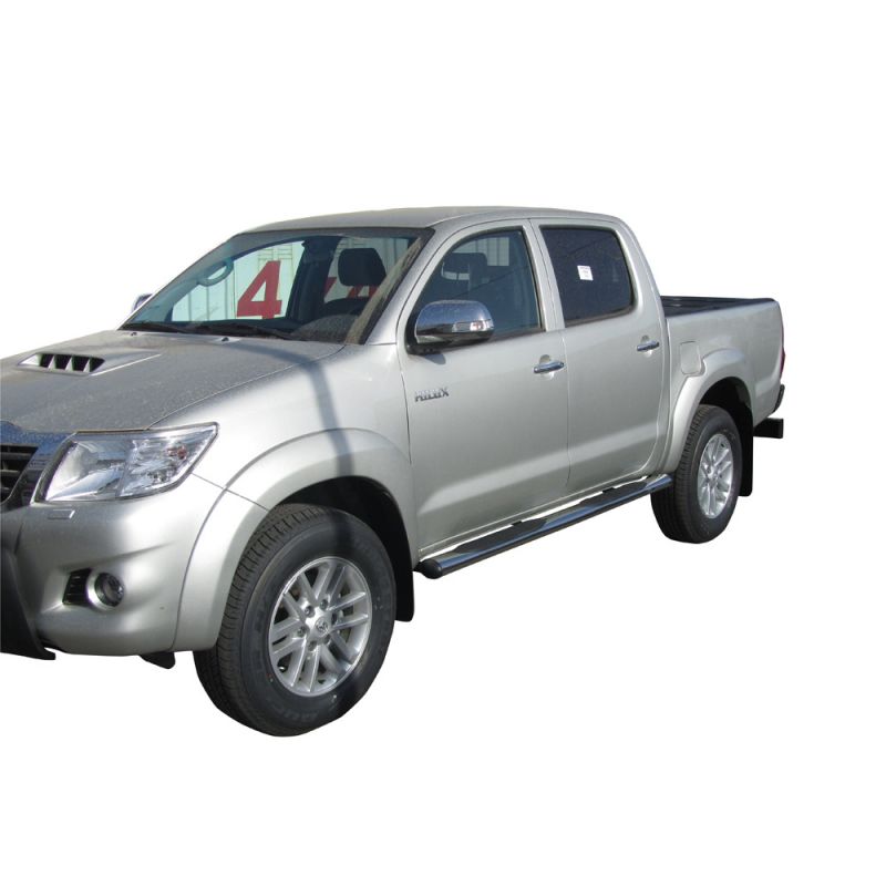 Σκαλοπάτια εργοστασιακού τύπου OVAL (πλακουτσωτά) από σωλήνα ΙΝΟΧ (4") με διπλό αντιολισθητικό πάτημα για την εύκολη πρόσβαση στην καμπίνα των επιβατών καθώς και την πλαϊνή παθητική ασφάλεια του αυτοκινήτου.