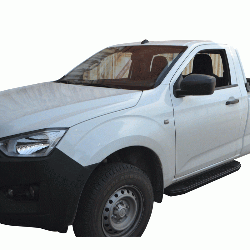 Σκαλοπάτια Premium πλατιά αλουμινίου πιτσιλωτά, σε ματ μαύρο χρώμα, βαρέως τύπου, με αντιολισθητικό πάτημα για την εύκολη πρόσβαση στην καμπίνα των επιβατών καθώς και την πλαϊνή παθητική ασφάλεια του αυτοκινήτου