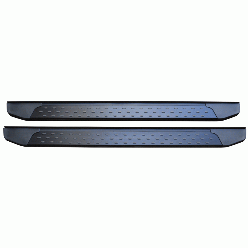 Σκαλοπάτια Premium πλατιά αλουμινίου πιτσιλωτά, σε ματ μαύρο χρώμα, βαρέως τύπου, με αντιολισθητικό πάτημα για την εύκολη πρόσβαση στην καμπίνα των επιβατών καθώς και την πλαϊνή παθητική ασφάλεια του αυτοκινήτου