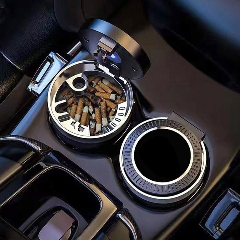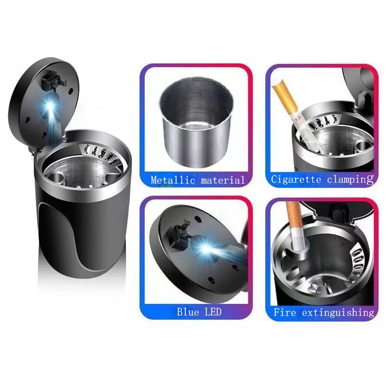 Λυχνία LED η οποία ανάβει αυτόματα όταν ανοίγει το καπάκι Εύκολη στήριξη και σβήσιμο του τσιγάρου Δεν διαχέεται καπνός όταν είναι κλειστό Μικρό και πρακτικό μέγεθος Για το αυτοκίνητο, γραφείο, σπίτι Διαστάσεις: 7x10cm