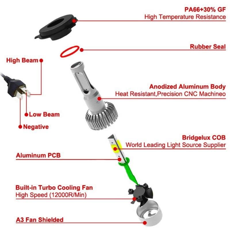 • HI: 7200LM • LOW: 6000LM • 60W • 12-24V • 6500K • Άσπρο φως • Διάρκεια ζωής: 30000 ώρες • Ισχυρή ψύξη με ανεμιστήρα • Πιστοποιήσεις: E4, CE, ROHS, DOT