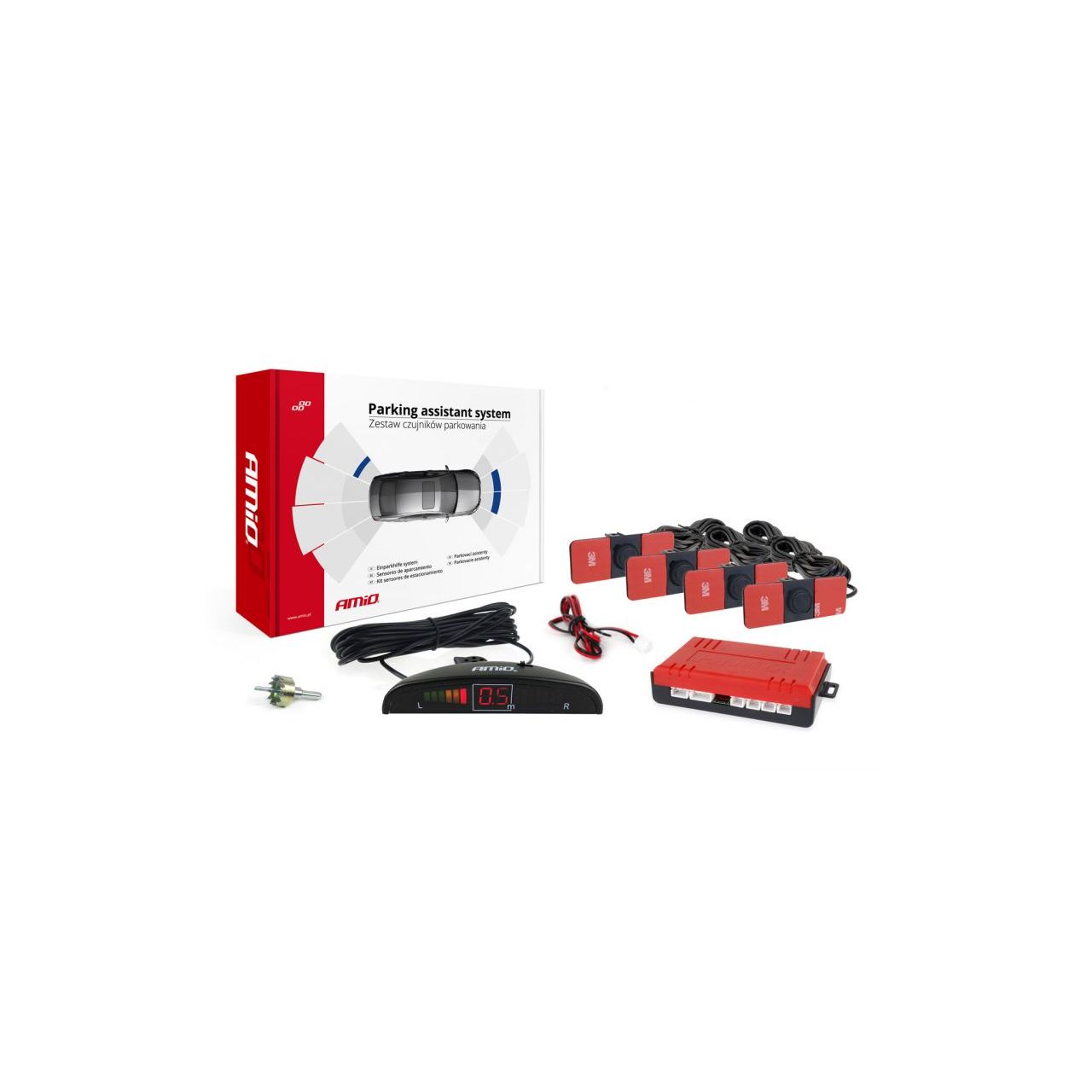 Σύστημα παρκαρίσματος 12v με 4 αισθητήρες τύπου inside mount 16,5mm και οθόνη, από την εταιρεία ΑΜΙΟ, πολωνικής προέλευσης.