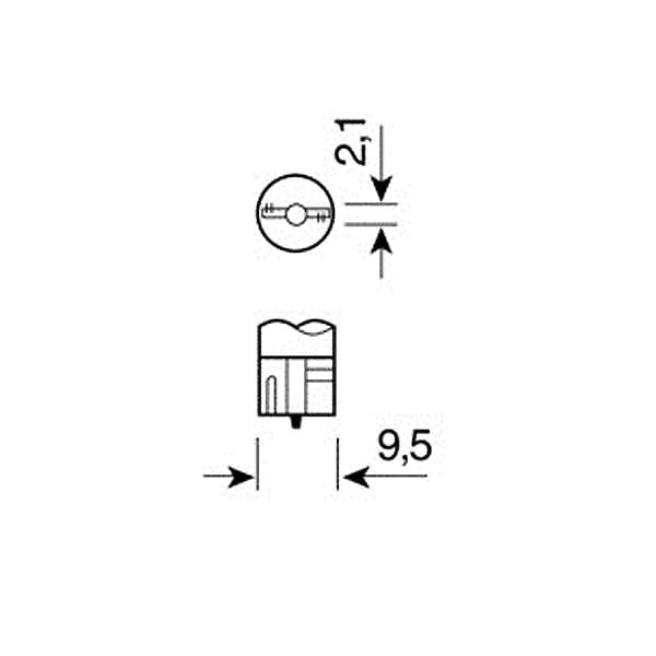 T10 12V 1W ΚΟΚΚΙΝΟ 1SMDx2CHIPS HYPER-LED2 W2.1x9.5d 11x27mm Ακάλυκο (καρφωτό) διάθλασης λαμπάκι με κόκκινο φωτισμό, κατάλληλο για ταμπλώ, φλας, φώτα θέσεως. Σε συσκευασία blister 2 τεμαχίων.