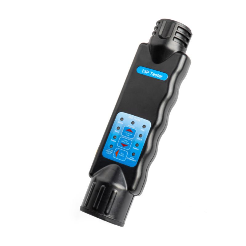 ΤΕΣΤΕΡ ΓΙΑ ΠΡΙΖΕΣ ΚΟΤΣΑΔΟΡΟΥ ΓΙΑ 13 ΦΙΣ 12V ΑMiO - 1 TEM. Τέστερ για πρίζες κοτσαδόρου 13φις, από την εταιρεία ΑMiO, πολωνικής προέλευσης. Επαγγελματικό, ασύρματο τέστερ σχεδιασμένο για να ελέγχει βύσματα και πρίζες ρυμουλκούμενου 13 ακίδων. Σας επιτρέπει να ελέγχετε γρήγορα και εύκολα τη σωστή λειτουργία του φωτισμού ρυμουλκούμενου. Είναι ιδανικό για χρήση τόσο από άπειρους χρήστες όσο και από επαγγελματίες. Συνδέστε το βύσμα στο τέστερ. Πατήστε το κίτρινο κουμπί που βρίσκεται στο πλάι του ελεγκτή. Εάν η ενδεικτική λυχνία είναι πράσινη, η εγκατάσταση είναι λειτουργική. Εάν η ενδεικτική λυχνία είναι κόκκινη, η εγκατάσταση είναι ελαττωματική ή ο λαμπτήρας έχει καεί. Το τέστερ έχει σχεδιαστεί για βύσματα και πρίζες 13 ακίδων (13 πόλων). Το τέστερ τροφοδοτείται από μπαταρία 9V (δεν περιλαμβάνεται) Διάγραμμα καλωδίωσης 13 πόλων ISO 11446. Διάσταση: 21,6 cm. Συσκευασία 1 τεμαχίου