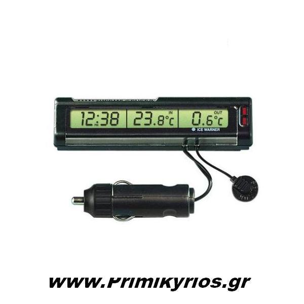 ψηφιακό ρολόϊ ενώ έχει την δυνατότητα μέτρησης θερμοκρασίας εσωτερικού και
