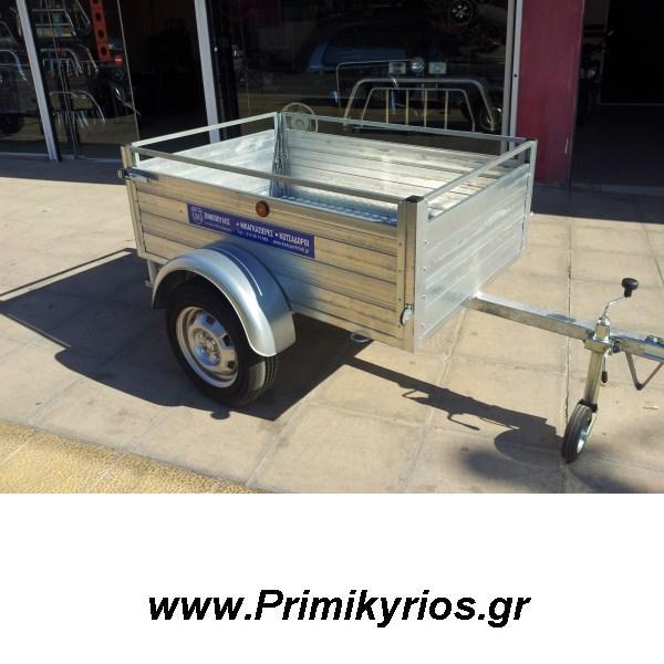 πλαινά από προφίλ 100x20, περιμετρικό καγκελάκι και άξονα γερμανικό 750kgr φορτίου.