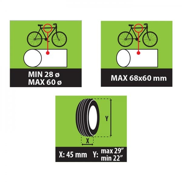 ΒΑΣΗ ΠΟΔΗΛΑΤΟΥ ΟΡΟΦΗΣ HUGGY (ΧΩΡΙΣ ΚΛΕΙΔΑΡΙΑ) MENABO Βάση Ποδηλάτου Οροφής HUGGY της Menabo, ιταλικής προέλευσης, για τη μεταφορά 1 ποδηλάτου. Διαθέτει ρυθμιζόμενους βραχίονες με διπλό σύστημα δέσης και 2 ροδέλες για τέλεια προσαρμογή επάνω στο σκελετό του ποδηλάτου. Στα σημεία συγκράτησης του ποδηλάτου (μεταξύ των βραχιόνων) υπάρχει πρόσθετη πλαστική επικάλυψη (καουτσούκ) για τη προστασία του σκελετού και την αποφυγή τυχόν γρατζουνιών ή φθορών. Η σιδερένια βέργα (ράγα) στο κάτω μέρος της είναι κατάλληλα σχεδιασμένη με υποδοχή (αυλάκι) για να εφαρμόζουν απευθείας οι ρόδες του ποδηλάτου επάνω, ενώ παραμένουν σταθερές κατά τη μεταφορά με τους ιμάντες συγκράτησης που παρέχονται. Πλήρως αναδιπλούμενη για να παραμένει κλειστεί στην οροφή του αυτοκινήτου, όταν δεν είναι σε χρήση. Συμβατή με όλους τους σκελετούς ποδηλάτου, οι οποίοι έχουν διάμετρο min: 28 mm. / max: 60 mm. και διαστάσεων max: 68 Χ 60 mm., καθώς επίσης και με τα περισσότερα μεγέθη ελαστικών. Ιδανικό προϊόν για τοποθέτηση σε όλες τις μπάρες οροφής αυτοκινήτου (αλουμινίου και σιδήρου) με παραδοσιακό σύστημα δέσης. - Υλικό: Ατσάλι. - Χρώμα: Ασημί με μαύρες λεπτομέρειες. - Χωρητικότητα: 1 ποδήλατο. - Μέγιστο βάρος φορτίου: 15 kg. - Περιλαμβάνει: 3 ιμάντες πρόσδεσης/συγκράτησης για τις ρόδες. - Κατάλληλη για οχήματα με μπάρες οροφής αυτοκινήτου (αλουμινίου και σιδήρου). - Γρήγορη τοποθέτηση. ---> Η Bάση Ποδηλάτου Οροφής HUGGY διατίθεται και με ενσωματωμένη κλειδαριά ασφαλείας HUGGY LOCK (3630/mb) και μπορείτε να τη βρείτε ΕΔΩ. ΣΗΜΕΙΩΣΗ: Αυτό το αξεσουάρ έχει σχεδιαστεί, κατασκευαστεί και ελεγχθεί με προσοχή τηρώντας όλους τους ισχύοντες κανονισμούς ασφαλείας. Έγκριση TÜV SÜD, συμβατό με DIN 75302 και ISO/PAS 11154:2006. Δείτε αναλυτικά: ΓΕΝΙΚΕΣ ΠΛΗΡΟΦΟΡΙΕΣ ΟΔΗΓΙΕΣ ΣΥΝΑΡΜΟΛΟΓΗΣΗΣ/ΧΡΗΣΗΣ ΑΝΤΑΛΛΑΚΤΙΚΑ ΜΕΡΗ & ΑΞΕΣΟΥΑΡ