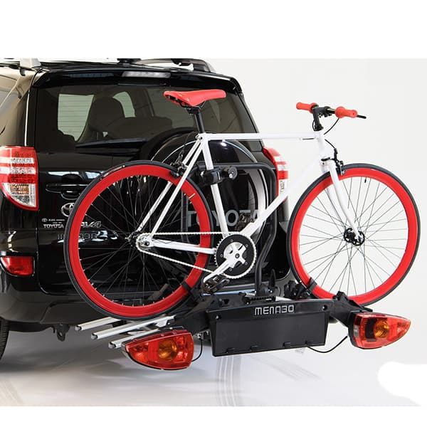 αλουμινένιες ράγες, μπορεί να μεταφέρει οποιοδήποτε τύπο ποδηλάτου, συμπεριλαμβανομένων ηλεκτρονικών ποδηλάτων, ποδηλάτων MTB. Εξοπλισμένο με σύστημα κλίσης, αντικλεπτική συσκευή και σύστημα ρυθμίσεως ταχείας προσαρμογής.