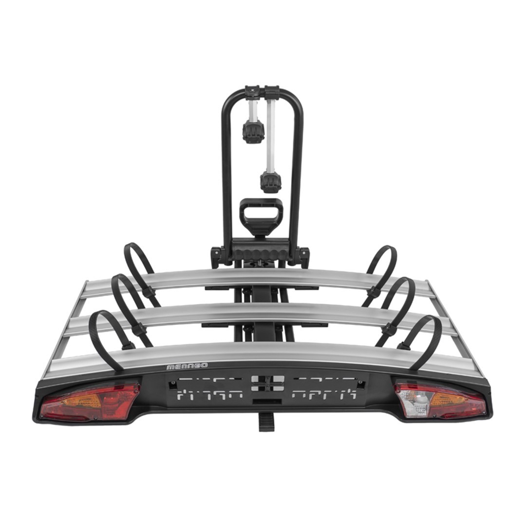 ΒΑΣΗ ΠΟΔΗΛΑΤΟΥ ΚΟΤΣΑΔΟΡΟΥ ALCOR 3 ΓΙΑ 3 ΠΟΔΗΛΑΤΑ Ή 2 E-BIKE/FAT BIKE (ΑΝΑΔΙΠΛΟΥΜΕΝΗ ΜΕ ΑΝΑΚΛΙΣΗ/ΜΟΧΛΟ ΓΡΗΓΟΡΗΣ ΑΣΦΑΛΙΣΗΣ/ΑΝΤΑΠΤΟΡΑ 13 PIN) MENABO Βάση ποδηλάτου κοτσαδόρου ALCOR 3 από την MENABO, 100% ιταλικής προέλευσης και κατασκευής, ιδανική για τη μεταφορά 3 ποδηλάτων, συμβατή εξίσου με 2 FAT bikes ή 2 E-bikes, κατάλληλη για οχήματα που διαθέτουν κοτσαδόρο. Το πλαίσιο της είναι κατασκευασμένο από ατσάλι υψηλής ποιότητας και στη βάση του έχει αντικλεπτικό σύστημα για πρόσθετη ασφάλεια από κίνδυνο πιθανής κλοπής, ώστε να μην χρειάζεται να αποσυνδέεται το προϊόν όταν δεν είναι σε χρήση. Τα 2 ρυθμιζόμενα μπράτσα με ροδέλες προσφέρουν τέλεια προσαρμογή επάνω στο σκελετό των ποδηλάτων ενώ παρέχεται η δυνατότητα χρήσης πρόσθετης κλειδαριάς (δεν περιλαμβάνεται – πωλείται ξεχωριστά) στο κάθε ένα από αυτά. Στο κάτω μέρος του πλαισίου οι ράγες (βέργες) συγκράτησης των ελαστικών είναι κατασκευασμένες από αλουμίνιο και η κάθε μία διαθέτει στα άκρα της 2 ιμάντες δέσης (δέστρες) για να συγκρατούν με απόλυτη ασφάλεια και σταθερότητα τους τροχούς των ποδηλάτων κατά τη μεταφορά. Η βάση είναι πλήρως αναδιπλούμενη ώστε να μπορεί να παραμένει κλειστή, χωρίς να παρεμποδίζει την ορατότητα του οδηγού κατά τις μετακινήσεις του, όταν δεν είναι σε χρήση, είναι εξοπλισμένη με αντικλεπτικό σύστημα, που λειτουργεί με μοχλό γρήγορης ασφάλισης/απασφάλισης (quick fixing lever/rapid lock), καθώς και με μηχανισμό ανάκλισης, ο οποίος λειτουργεί με τη χρήση πεντάλ (ποδομοχλού), το οποίο βρίσκεται στο μπροστινό της μέρος, για να μπορείτε εύκολα και γρήγορα να ανοίξετε το πορτ μπαγκάζ του οχήματος σας με άνεση σε οποιαδήποτε περίπτωση ανάγκης κατά τη διάρκεια του ταξιδιού, χωρίς να σας εμποδίζει ο όγκος των ποδηλάτων. Διαθέτει ενσωματωμένα φανάρια, τα οποία θέτονται σε λειτουργία και ηλεκτροδοτούνται από τον κοτσαδόρο με τη χρήση αντάπτορα 13 pin, καθώς και υποδοχή για να τοποθετηθεί πλαίσιο με πινακίδα κυκλοφορίας. Όλα τα σημεία που έρχονται σε επαφή με το όχημα ή τον σκελετό των ποδηλάτων είναι ενισχυμένα με επένδυση/μαξιλαράκια στήριξης από μαλακό αντιολισθητικό λάστιχο και συνδέσεις με πλαστική επικάλυψη (καουτσούκ) για προστασία και αποφυγή από γρατζουνιές ή φθορές. Συμβατή με σκελετούς ποδηλάτου, οι οποίοι έχουν διάμετρο min: 30 mm. / max: 50 m., διαστάσεις σκελετών (οβάλ, τετράγωνους, τριγωνικούς) min: 30 Χ 60 mm. / max: 50 Χ 70 mm., διάμετρο ελαστικού min.: 22'' / max.: 29'', πλάτος ελαστικού max: 110 mm και μήκος μεταξόνιου max: 1260 mm. Κατάλληλη βάση στήριξης για όλους τους τύπους ποδηλάτων, συμβατικά ή ηλεκτροκίνητα (E-bike), καθώς και με συμβατικά ή φαρδιά ελαστικά (FAT bike). Στη συσκευασία περιλαμβάνονται οδηγίες χρήσης, τοποθέτησης και συναρμολόγησης για την εύκολη και γρήγορη εφαρμογή της. - Υλικό: Ατσάλι και αλουμίνιο. - Χρώμα: Μαύρο με ασημί λεπτομέρειες. - Χωρητικότητα: 3 ποδήλατα (ή 2 FAT bikes/E-bikes). - Μέγιστο συνολικό βάρος: 60 kg. - Με σύστημα ανάκλισης και σύστημα γρήγορης ασφάλισης/απασφάλισης με μοχλό. --> Το πλαίσιο πινακίδας (52,5 Χ 12,5 cm) 10450/MB μπορείτε να το βρείτε ΕΔΩ. --> Τα αντικλεπτικά πόμολα για τα ρυθμιζόμενα μπράτσα μπορείτε να τα βρείτε ΕΔΩ. --> Δείτε επίσης όλους τους διαθέσιμους τύπους βάσης κοτσαδόρου ALCOR (2/3/4 ποδηλάτων) ΕΔΩ. Συσκευασία 1 τεμαχίου. Δείτε επίσης αναλυτικά: ΓΕΝΙΚΕΣ ΠΛΗΡΟΦΟΡΙΕΣ ΑΝΤΑΛΛΑΚΤΙΚΑ ΜΕΡΗ & ΑΞΕΣΟΥΑΡ