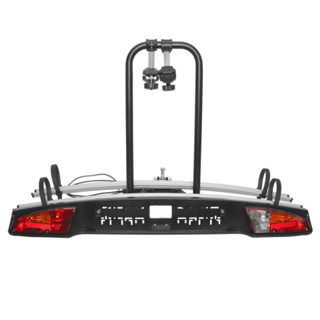 Υλικό: Ατσάλι και αλουμίνιο. - Χρώμα: Μαύρο με ασημί λεπτομέρειες. - Χωρητικότητα: 2 ποδήλατα (ή 1 E-bike). - Μέγιστο βάρος φορτίου: 45 kg. -