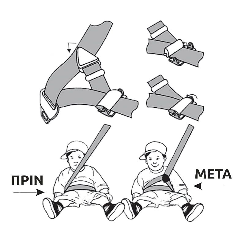 • Προσφέρετε μεγαλύτερη ασφάλεια για το παιδί σας μέσα στο αυτοκίνητο. • Πολύ εύκολο στη χρήση, απλά το συνδέετε στην κανονική ζώνη ασφαλείας σε δευτερόλεπτα. • Προσαρμόζεται ανάλογα με το μέγεθος του παιδιού. • Κατάλληλο για ηλικίες από 3-14 ετών. ΠΡΟΣΟΧΗ! • Το πρόσθετο ζώνης δεν έιναι για βρέφη ή μικρά παιδιά κάτω των τριών ετών. • Το πρόσθετο ζώνης τοποθετήται στη ζώνη μόνο και όχι στο παιδικό κάθισμα.